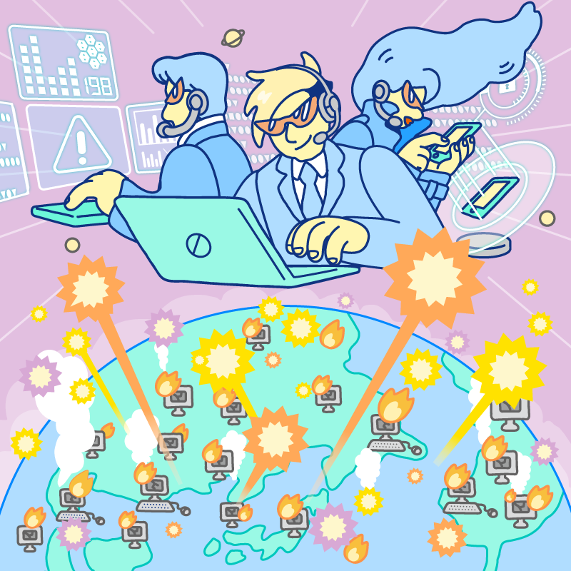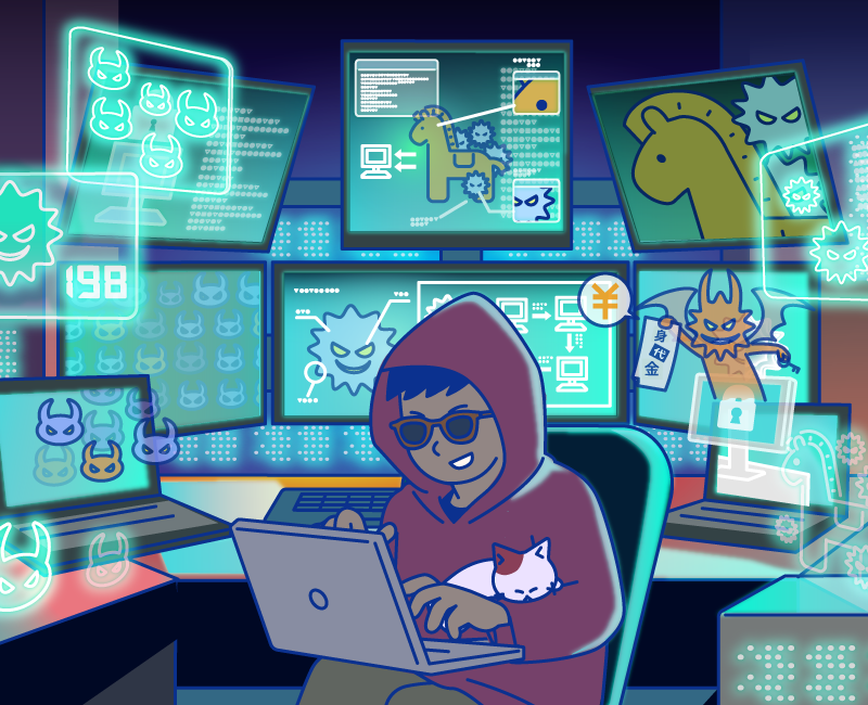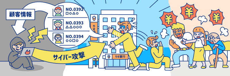「サイバー攻撃」「情報漏洩」「マルウェア対策」などのITセキュリティに関わる仕組みが、日常生活にどう影響するのかをわかりやすい図で解説しています。